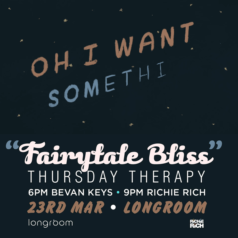 Thursday Therapy "Fairytale Bliss"Rich WilsonMar 23, 20171 min readThursday Therapy coming to you live tonight from @longroomnz with mr Bevan Keys on now and me Richie Rich on at 9. Park up and enjoy the 💻🎤🎹🎧💿🥃🍷🍹🍸🍾🍺🍱🍲🍝🥘🥗🍞
